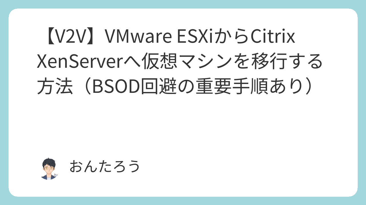 VMware ESXi上で稼働するWindows仮想マシンを、Citrix XenServer環境へ移行(V2V: Virtual-to-Virtual)する際の手順とトラブルシューティングを解説します。